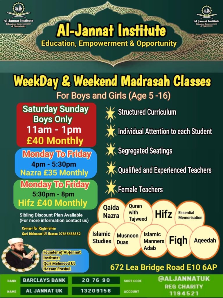 Alhamdulillah, at present 70 students (boys and girls) are studying at Al Jannat Institute. Classes are conducted by highly qualified teachers, along with the support of dedicated volunteers, in a professional and Islamic environment.